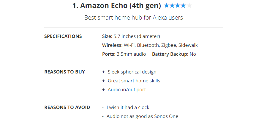 With Bluetooth, Wi-Fi, and Zigbee, the Amazon Echo (4th generation) is the best smart home hub for most people. Thanks to its multiple radios, it can connect to a huge number of low-power smart home devices, and Alexa's routines are pretty sophisticated, letting you use a number of triggers to automatically activate other smart home devices. It also works with Alexa Guard, which will listen for glass breaking and smoke alarms, and can turn on your lights and notify you in the event of an emergency.The 4th-generation Echo also supports Amazon Sidewalk, a very new low-power, long-range networking protocol, which will work with things such as Tile trackers and smart lights over much greater distances.